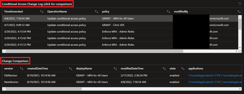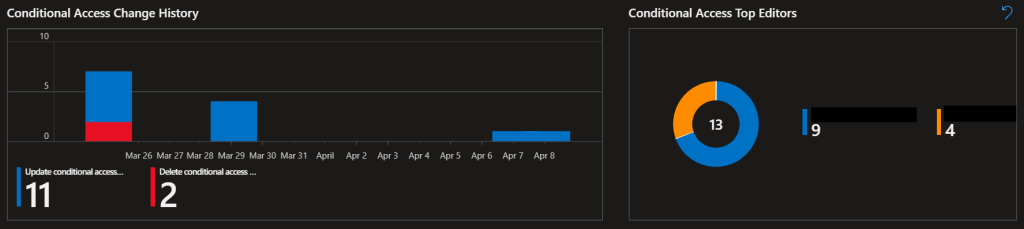 I recently released my Conditional Access Sentinel Analytics Rules Pack to help you monitor Conditional Access changes and bad configuration. Alerts will help you notice any configuration changes happening, both accidental and malicious. But then I figured, it would be nice to visualize the queries to better understand the history of recent conditional access changes, so I created a dashboard based on Microsoft Sentinel/Azure Log Analytics workbooks.
