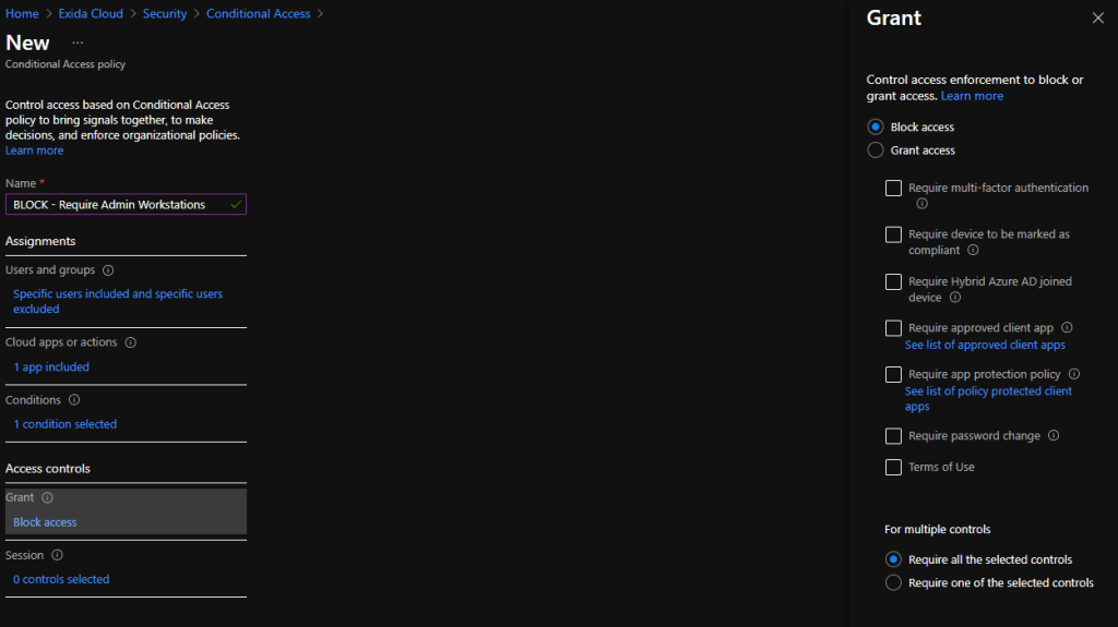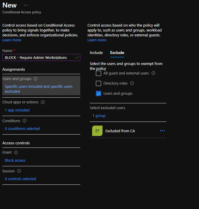 Conditional Access Policy: BLOCK – Require Admin Workstations